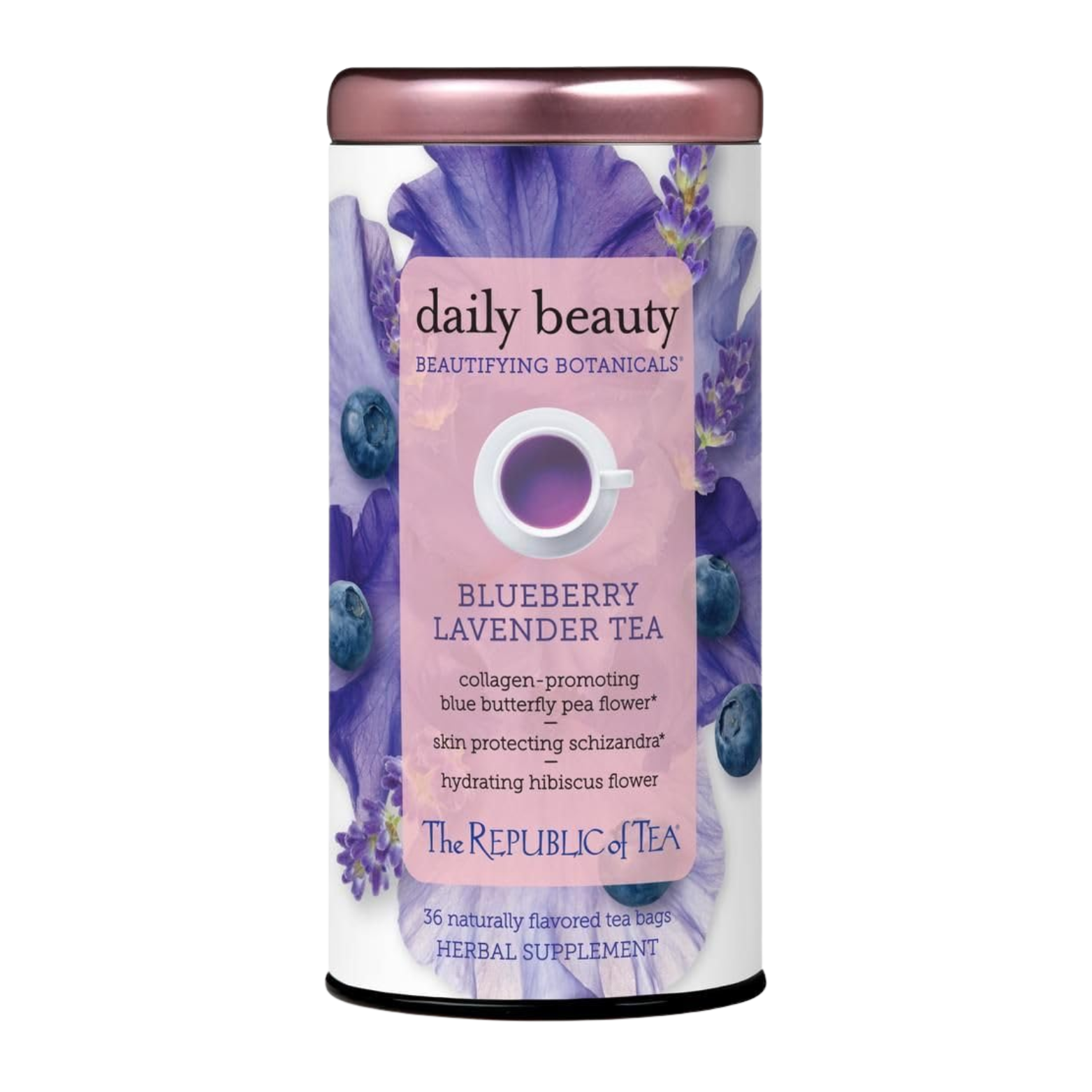 Glow from the inside out with Daily Beauty Blueberry Lavender Tea – a radiant herbal blend infused with skin-loving botanicals. Featuring antioxidant-rich blueberry, calming lavender, and hydrating hibiscus, this caffeine-free tea supports your wellness while offering a delicious floral-berry flavor.